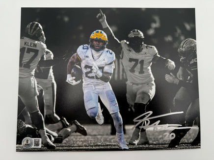 This 8x10 photo features a signature from Kalel Mullings, a standout player from the Michigan Wolverines who helped secure their 13-10 victory over Ohio State. Certified by Beckett, this signed photo is a must-have for any fan or collector.