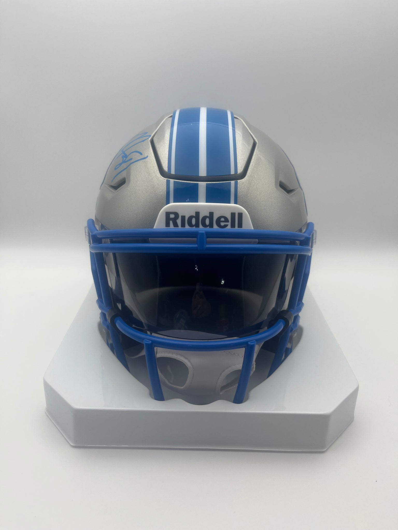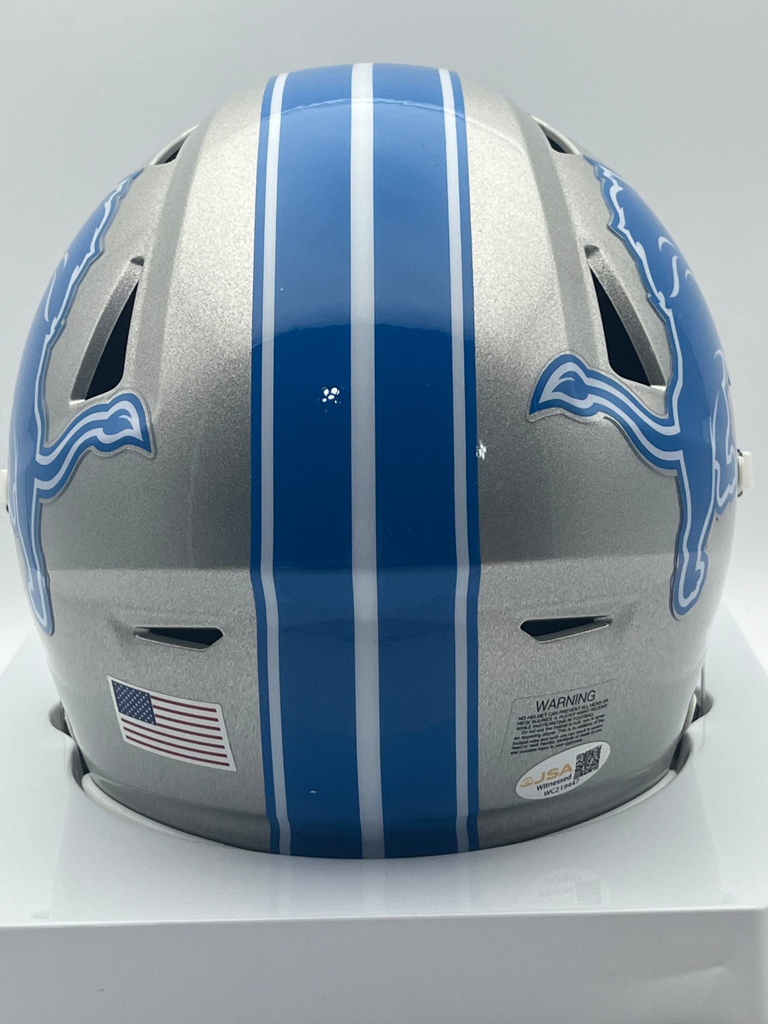 This Detroit Lions midi-helmet, autographed by Calvin Johnson, comes with a JSA Certificate of Authenticity. A must-have for any football fan, this collectible showcases Calvins signature and team pride. Display it proudly and add a unique piece of NFL history to your collection.