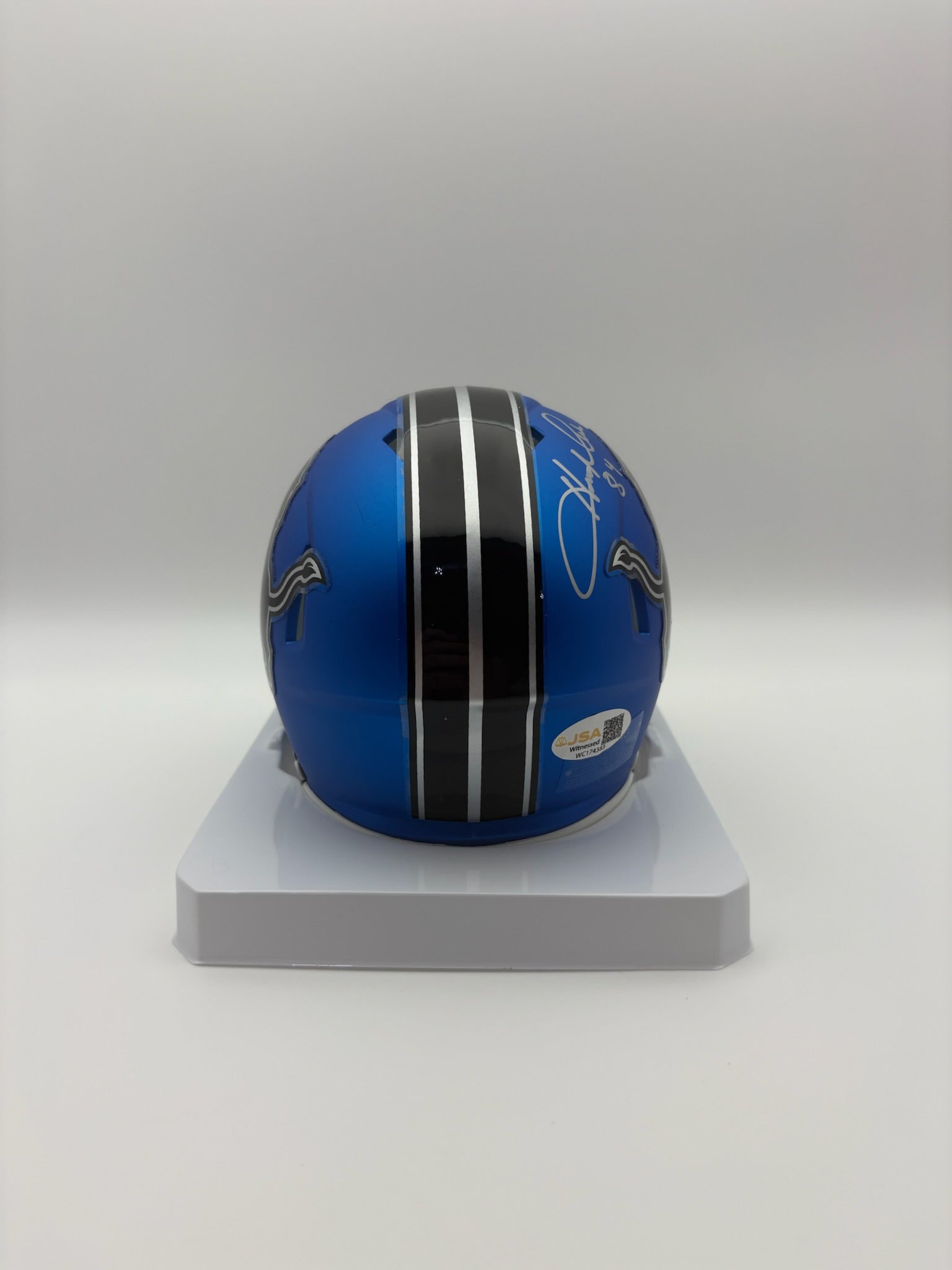 Celebrate your passion for football with this Herman Moore autographed Detroit Lions alternate mini football helmet. Authenticated by JSA with a Certificate of Authenticity, this collectible piece offers both display appeal and verified legitimacy. Perfect for dedicated fans and collectors, it captures a moment of sports history in a compact, high-quality design.