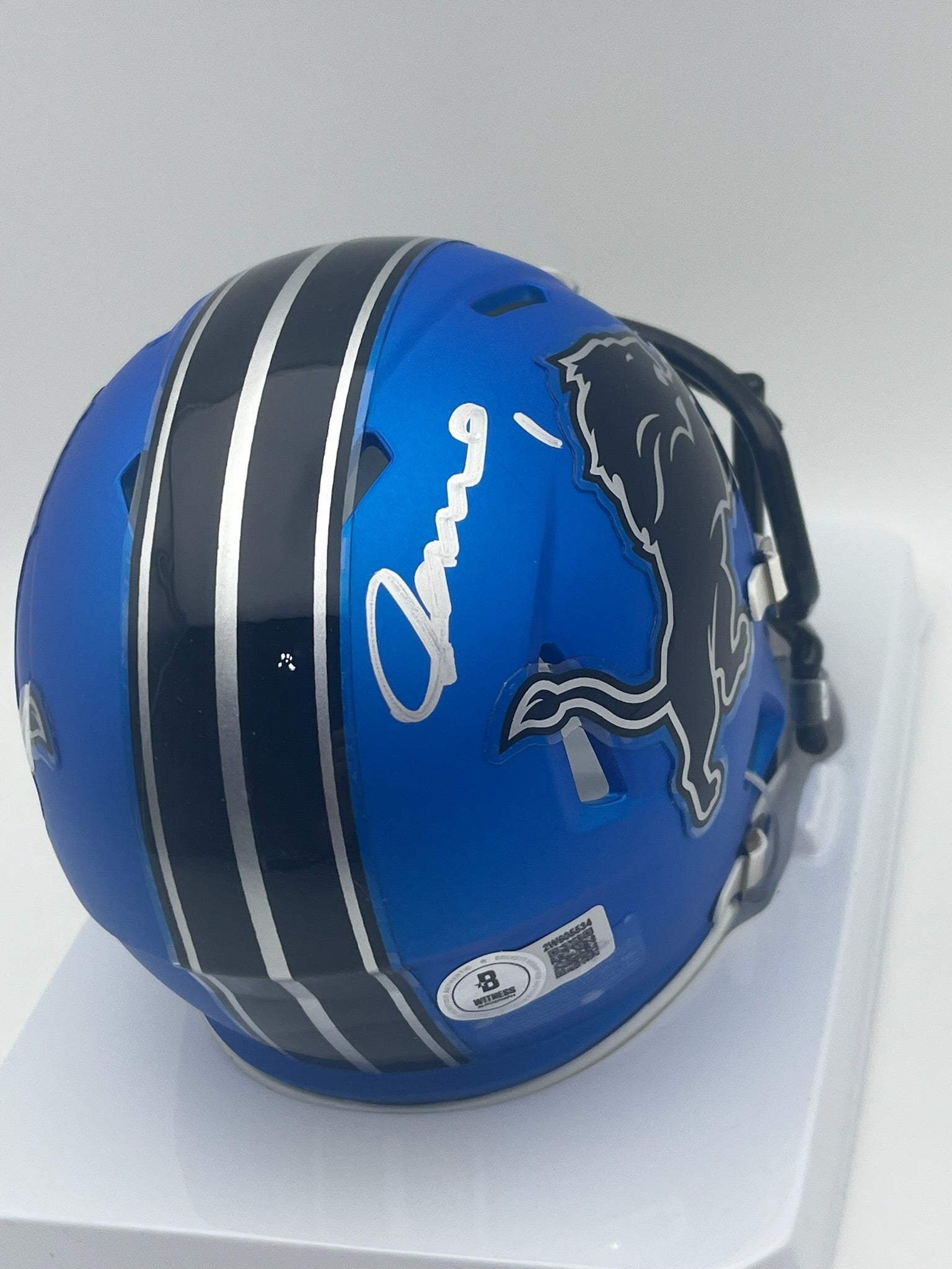 This is a rare opportunity to own a piece of Detroit Lions history. The Jamison Williams autographed 2024 alt mini helmet has been carefully authenticated by Beckett and comes with a certificate of authenticity. This helmet is perfect for any avid sports memorabilia collector who is looking for a unique addition to their collection.