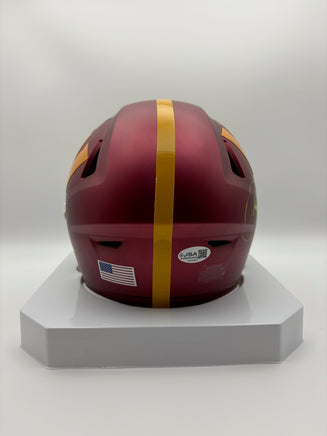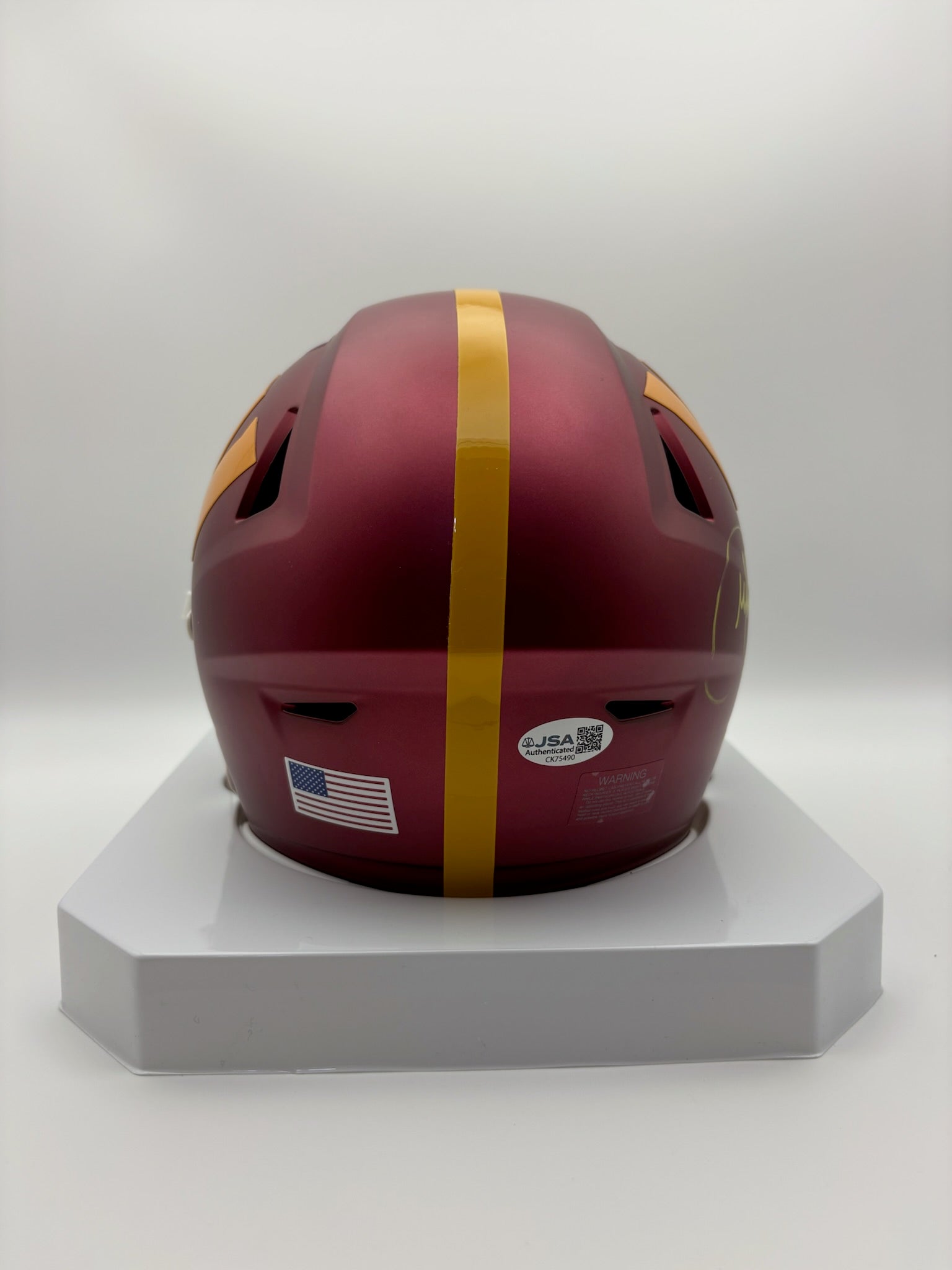 Expertly autographed by Mike Sainristil, this Washington Commanders midi mid size football helmet adds an authentic touch to any collection. Verified by JSA CoA, this high-quality piece guarantees its value. Own a piece of NFL history and display your love for the game with this officially licensed item.