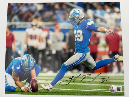 This autographed 8x10 photo features Jake Bates of the Detroit Lions. The photo is an original and has been authenticated by Beckett with a WITNESS CoA. Bates has signed the photo himself, making it a great addition to any sports memorabilia collection. The photo is perfect for fans of the Detroit Lions and football in general.