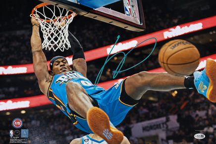 This is an autographed Detroit Pistons 16x20 Photo  featuring the signature of Jalen Duren. This one-of-a-kind item is authenticated by James Spence Authentication (JSA).I t is perfect for sports fans and collectors alike who want to own a piece of history from this talented basketball player.