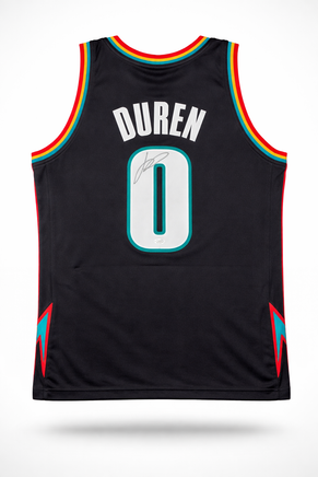 This is an autographed Detroit Pistons black custom basketball jersey featuring the signature of Jalen Duren. This one-of-a-kind item is authenticated by James Spence Authentication (JSA). The jersey is made of high-quality materials. It is perfect for sports fans and collectors alike who want to own a piece of history from this talented basketball player.