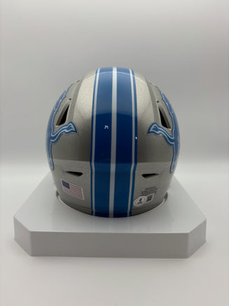 This Detroit Lions midi-helmet, autographed by player Aidan Hutchinson, comes with a Beckett Certificate of Authenticity. A must-have for any football fan, this collectible showcases Hutchinsons' signature and team pride. Display it proudly and add a unique piece of NFL history to your collection.