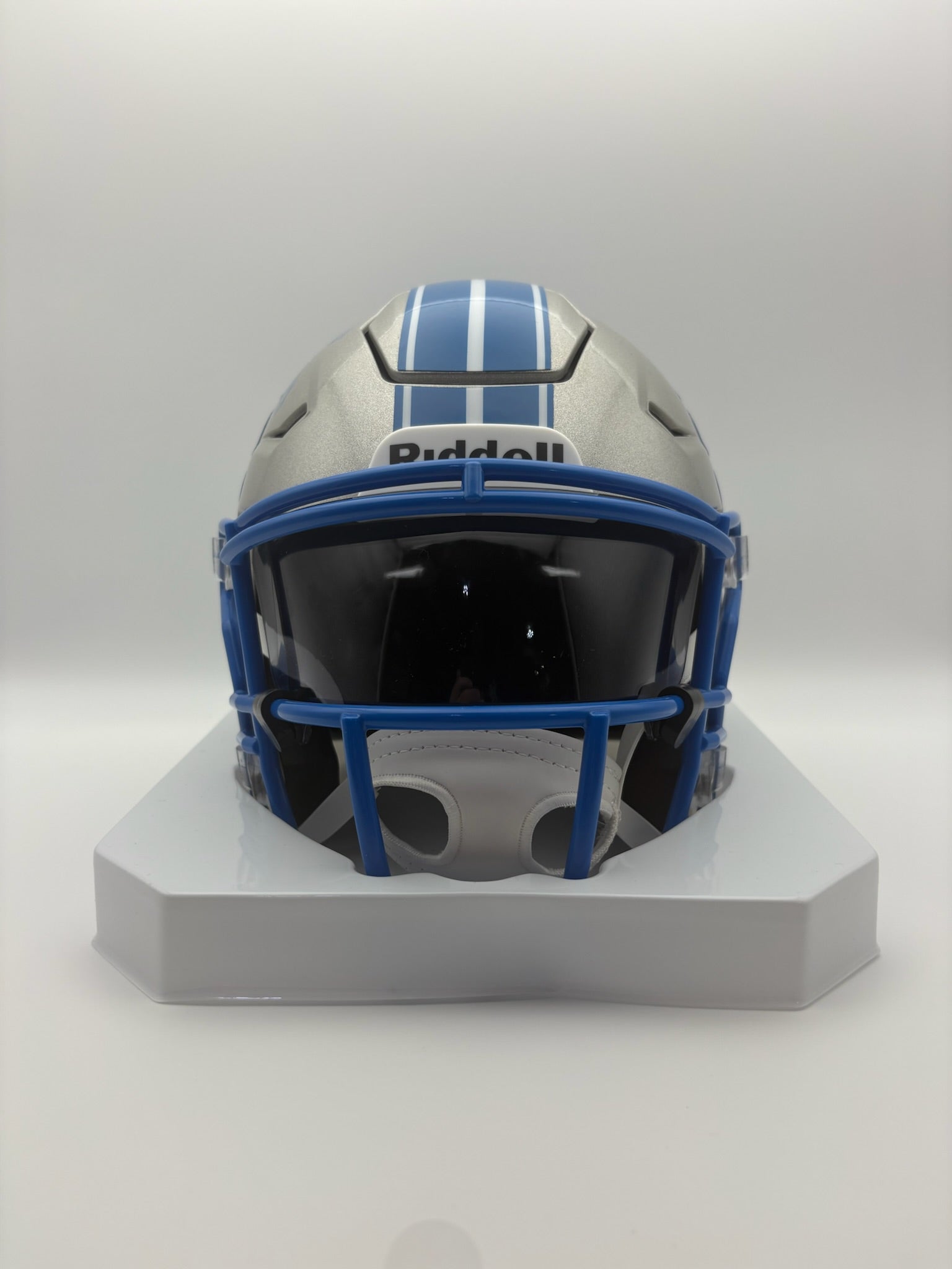 This Detroit Lions midi-helmet, autographed by player Amik Robertson, comes with a JSA CoA. A must-have for any football fan, this collectible showcases Robertson's signature and team pride. Display it proudly and add a unique piece of NFL history to your collection.
