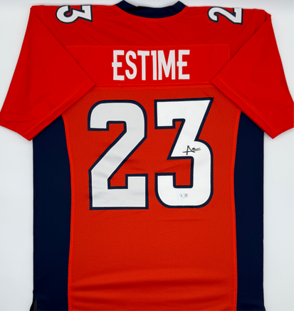 Own a piece of football history with this Audric Estime autographed Denver Broncos custom jersey. This jersey is perfect for any fan of the Denver Broncos and features Estime's signature in bold black ink. The jersey is an original, Beckett COA certified.