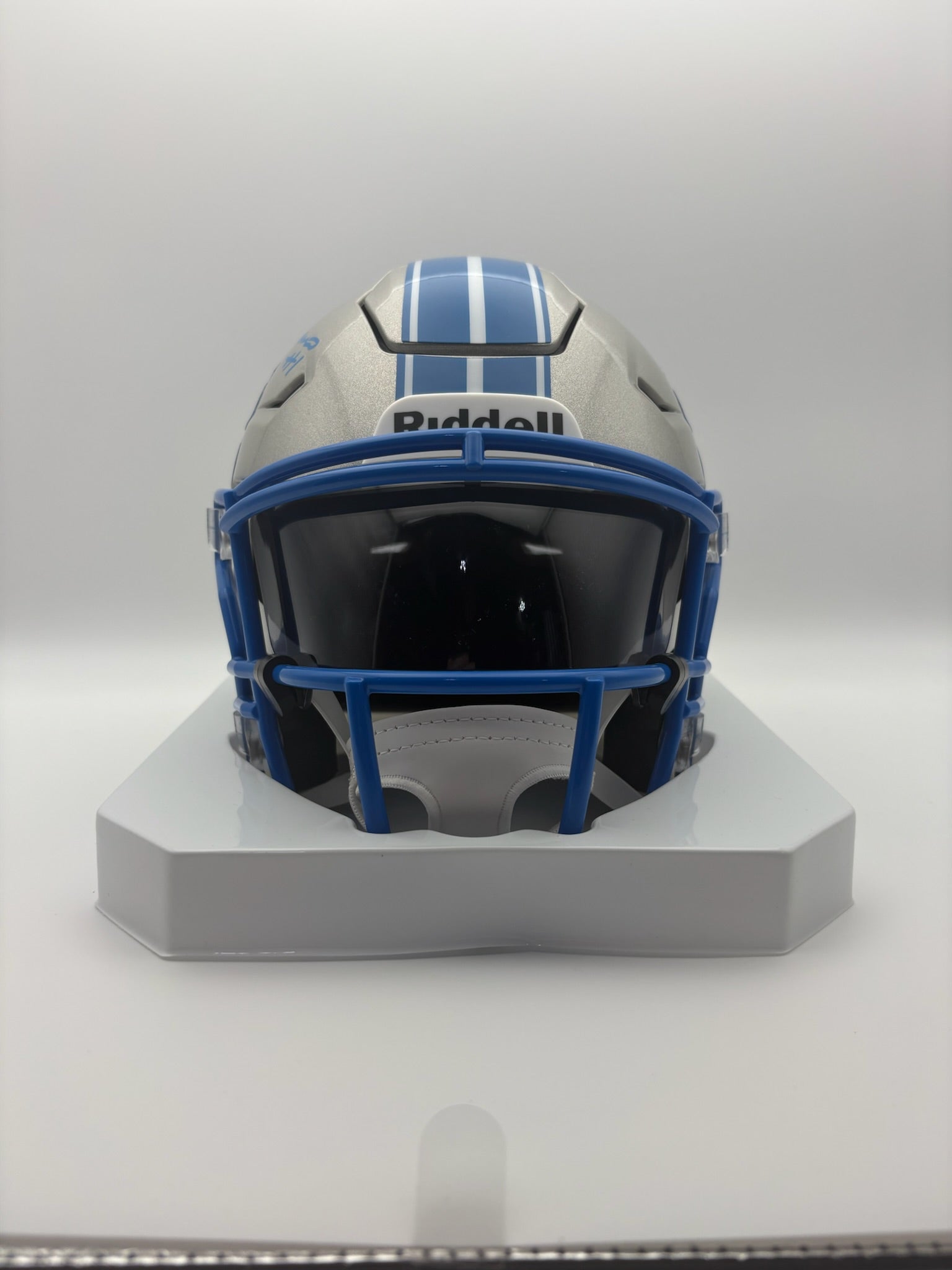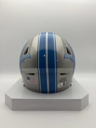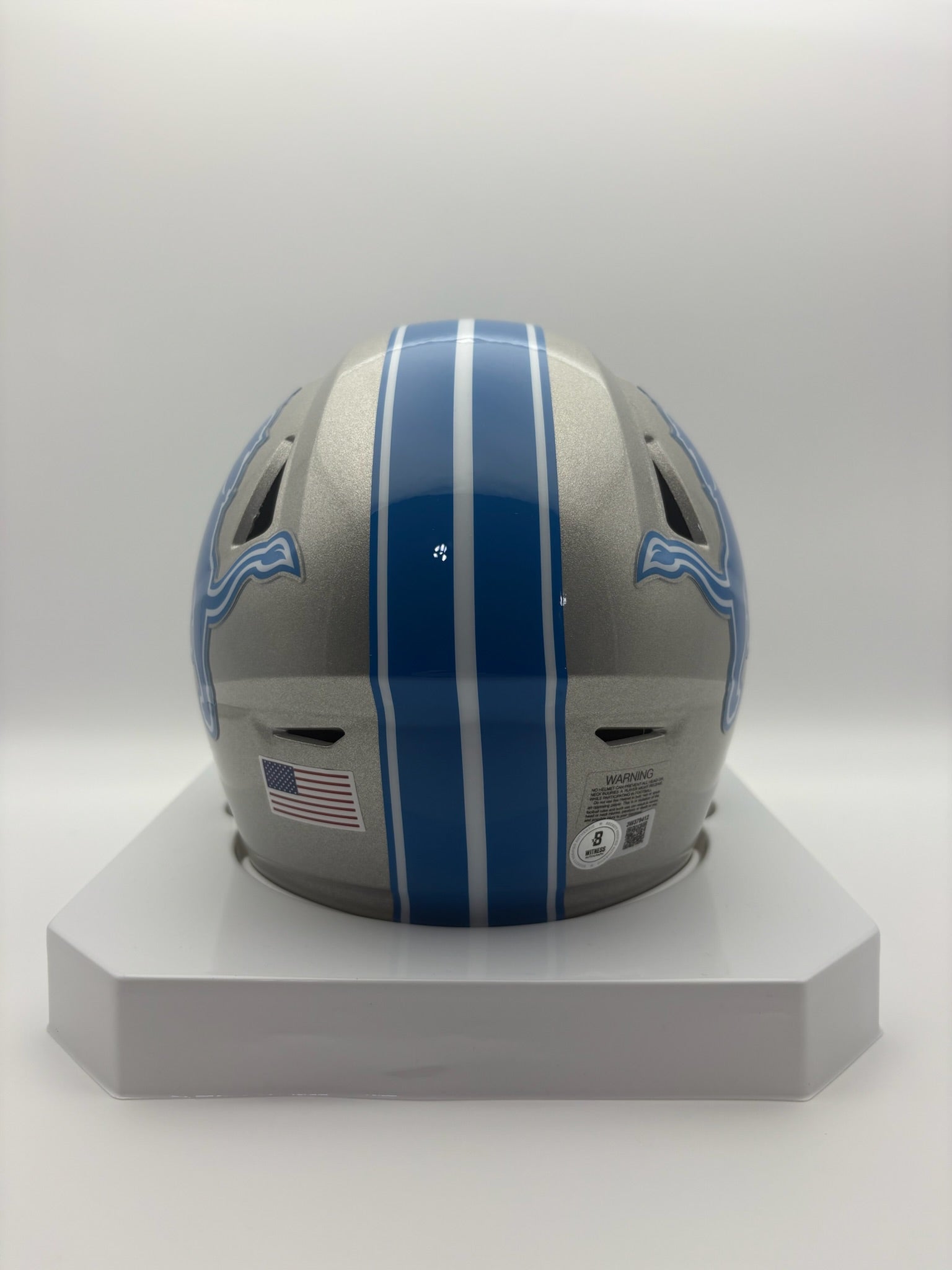 This Detroit Lions midi-helmet, autographed by player Jameson Williams, comes with a Beckett Certificate of Authenticity. A must-have for any football fan, this collectible showcases Williams' signature and team pride. Display it proudly and add a unique piece of NFL history to your collection.