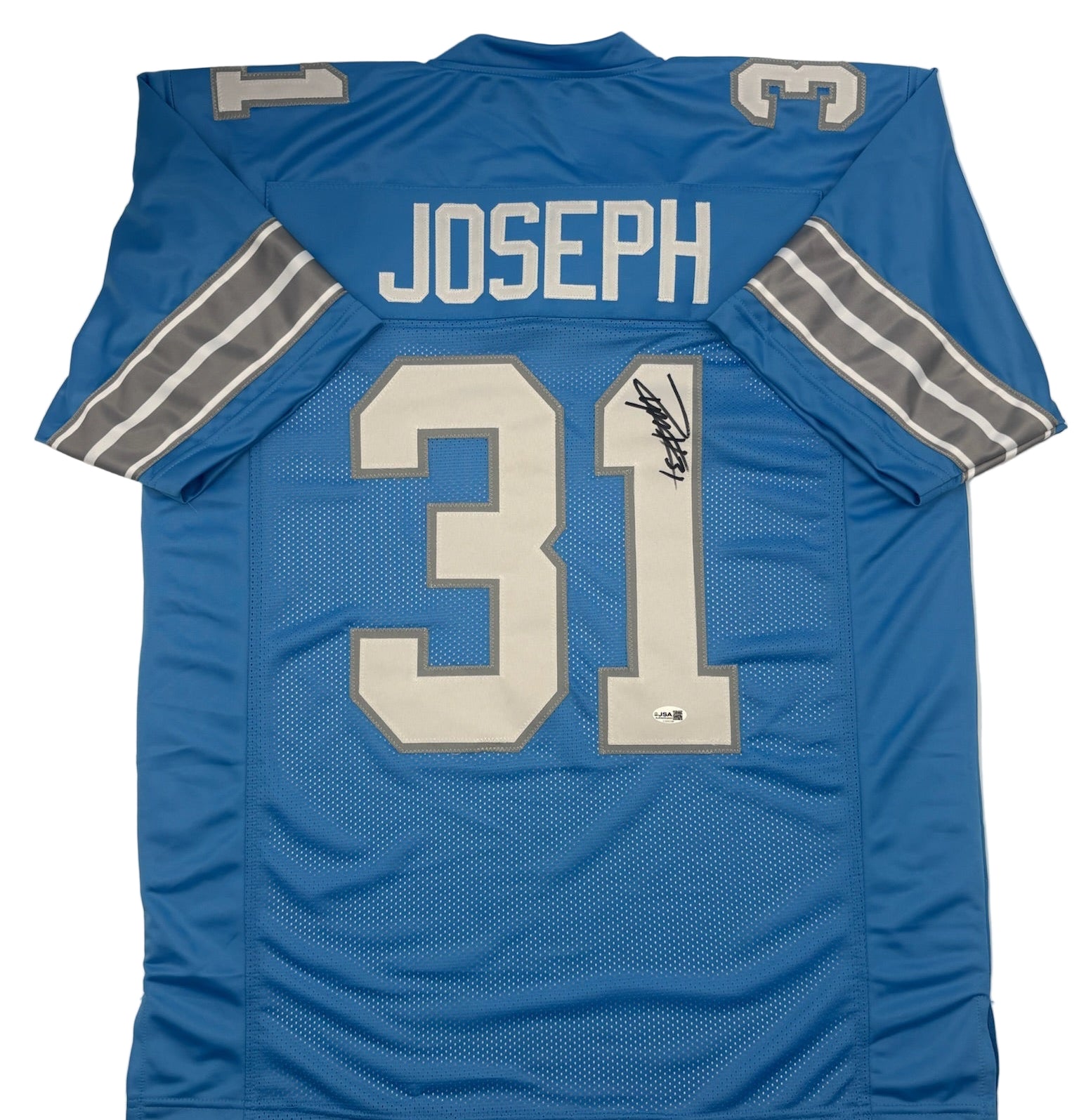 This Detroit Lions Custom jersey is a one-of-a-kind item signed by Kerby Joseph himself. The jersey is authenticated by James Spence Authentication (JSA) and comes with a certificate of authenticity. You can be sure that this jersey will make a great addition to any sports memorabilia collection. The jersey is perfect for fans of the Detroit Lions and collectors of football memorabilia. It is a great way to show your support for your favorite team and player.