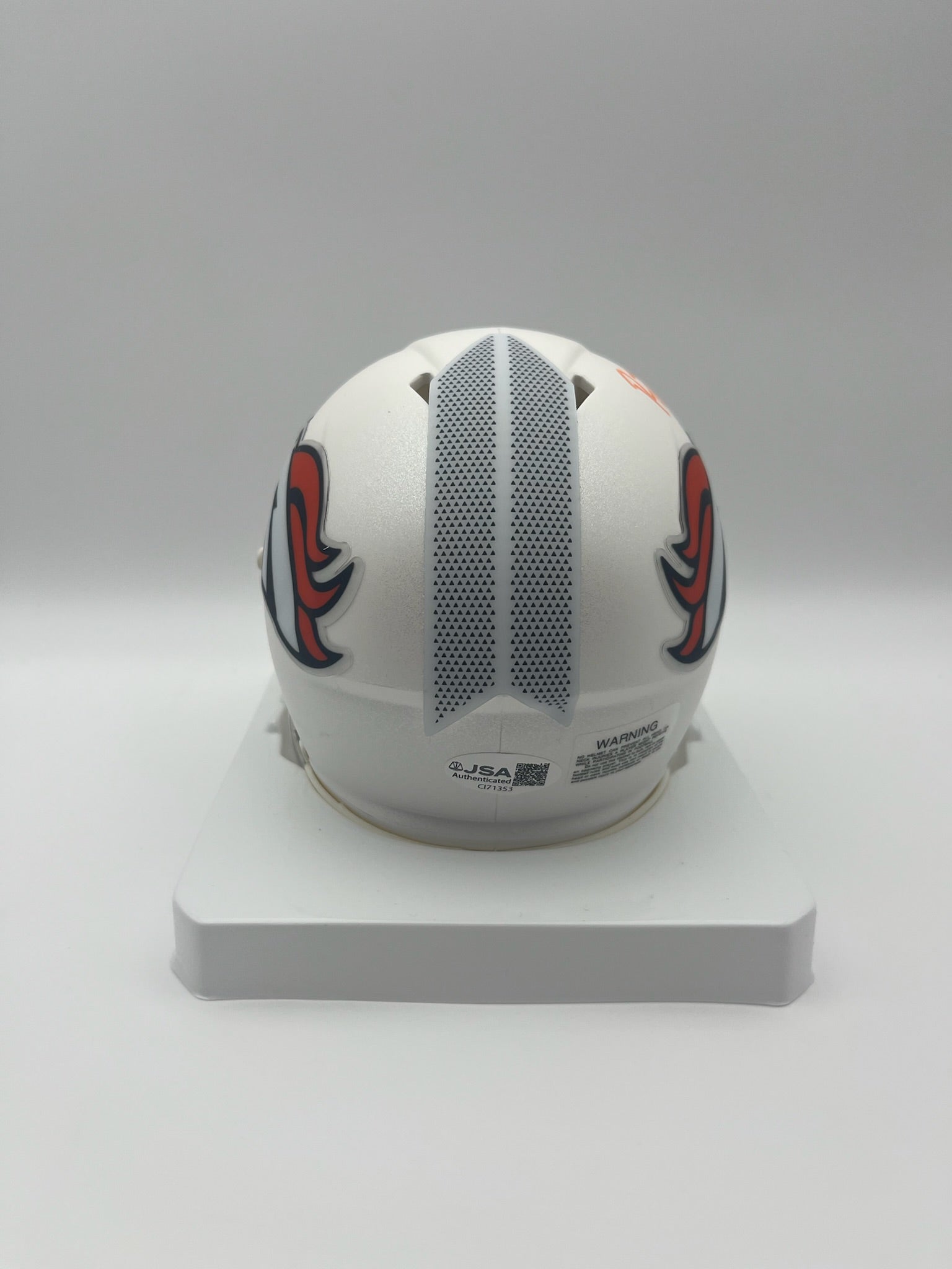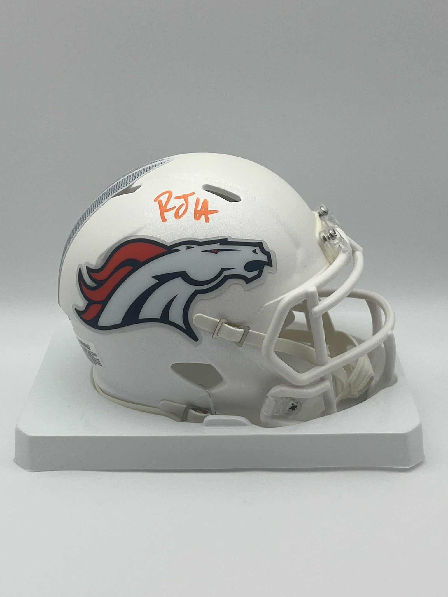 This is a rare opportunity for fans of the Denver Broncos to own a piece of football history. This autographed mini helmet features the signature of RJ Harvey. The helmet is a great addition to any sports memorabilia collection and comes with authentication from JSA.